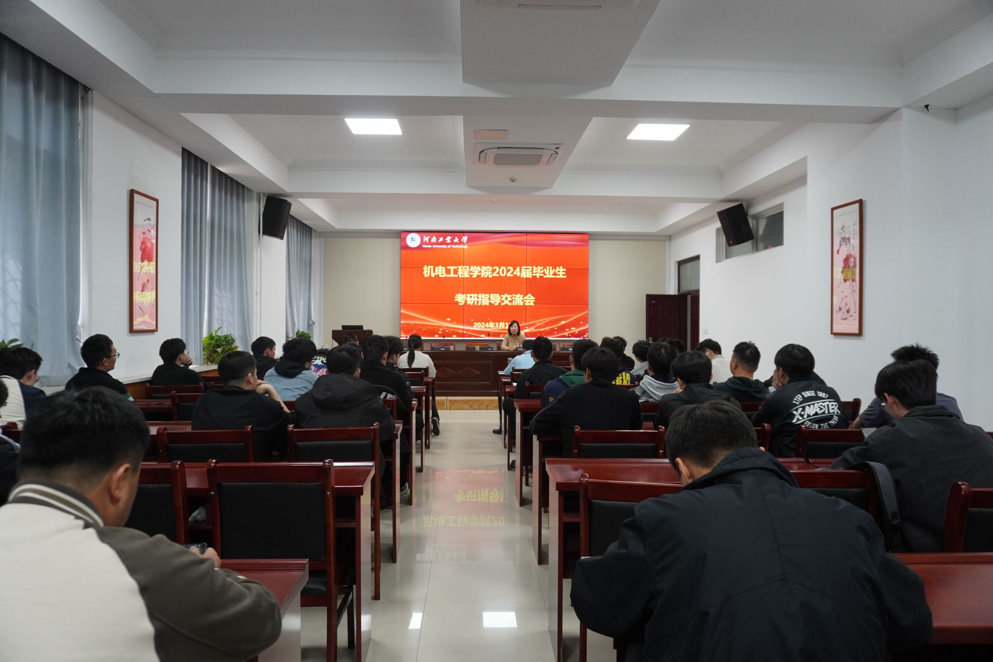 在7224分专业召开2024届毕业生考研指导交流会。学院党委副书记张小彩、研究生办和学工办老师、部分系主任、教师代表及全体考研过线学生参加会议。会议由毕业班辅导员周阳阳主持。