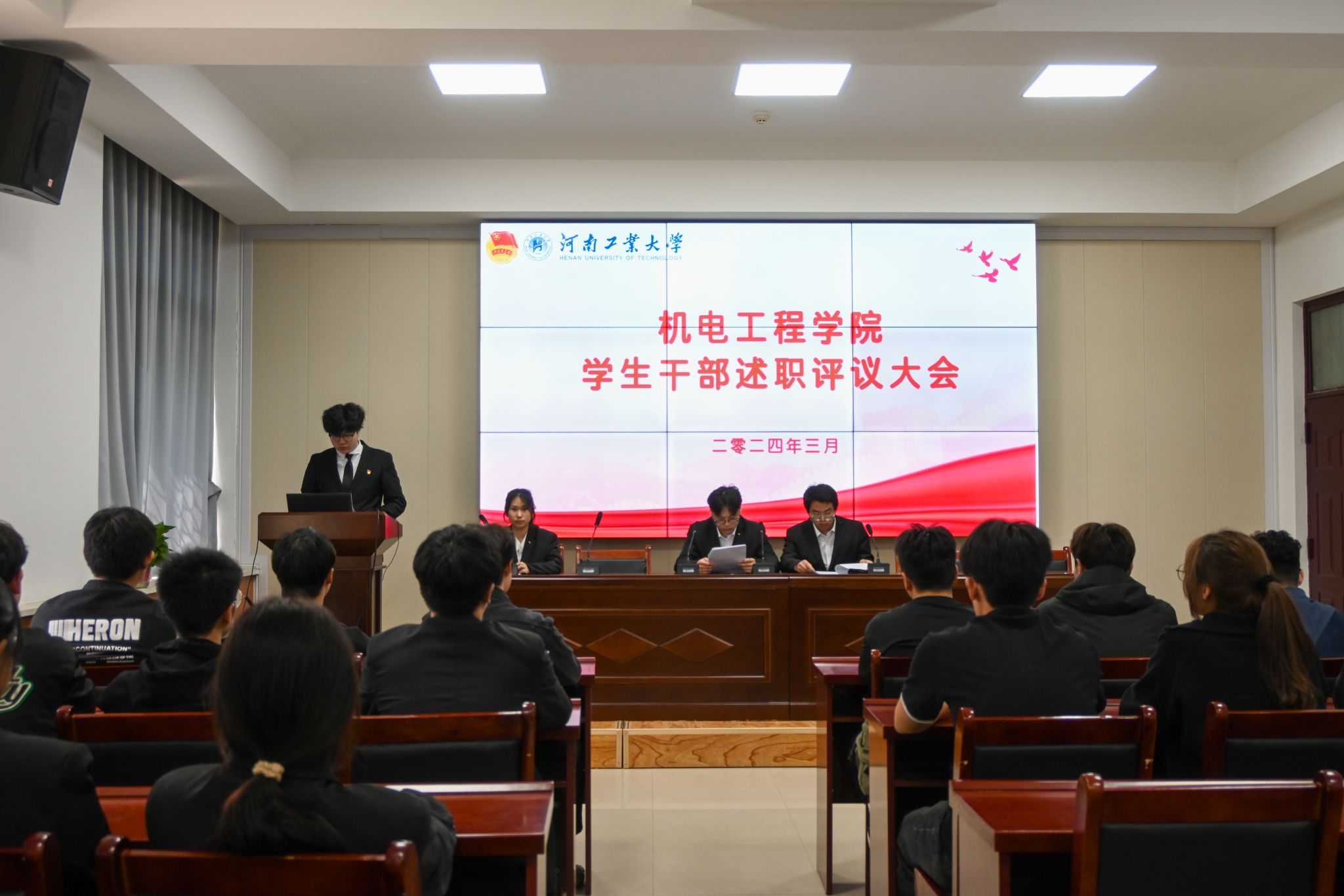 在捷赛厅召开学生干部述职评议大会。学院团委副书记丁晶晶及全体学生会工作人员参加,会议由学生会执行主席刘家瑞主持。