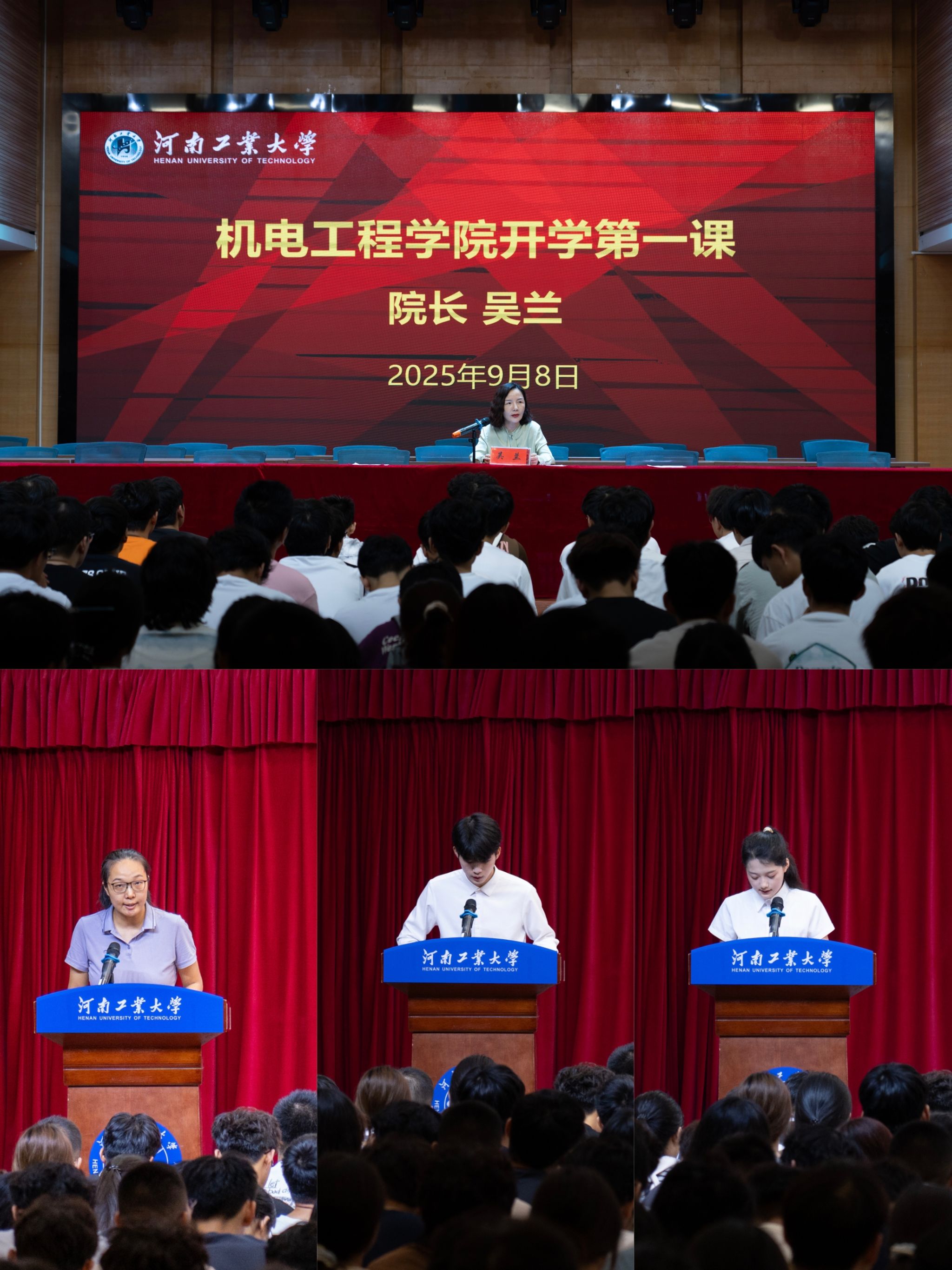 9月8日,学院在25号楼201举行2025级新生开学典礼。学院领导班子全体成员、各科室(系)主任、新生班主任、全体辅导员以及全体2025级本科新生参加活动。典礼由党政办副主任邱慧主持,现场气氛庄重而热烈。优秀老生代表智造2402班李鹏飞分享了自己的大学成长经验,激励新生积极进取;新生代表机制2506班王凯露满怀憧憬地表达了对大学生活的期待与决心;教师代表蒋林老师则以专业的视角和殷切的期望,为新生送上了宝贵的建议。最后,院长吴兰以《奋进新征程,书写新篇章》为题讲授“开学第一课”,通过回顾学校与学院发展历程,展示师资力量、人才培养和科研成果,激励新生传承工大精神,以奋进者和学习者的姿态开启大学新篇章。