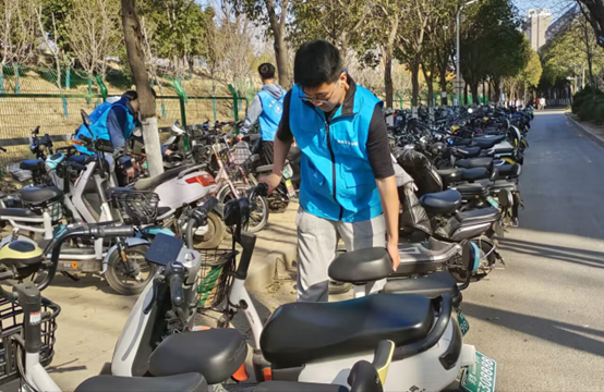 整理共享单车,维护校园环境