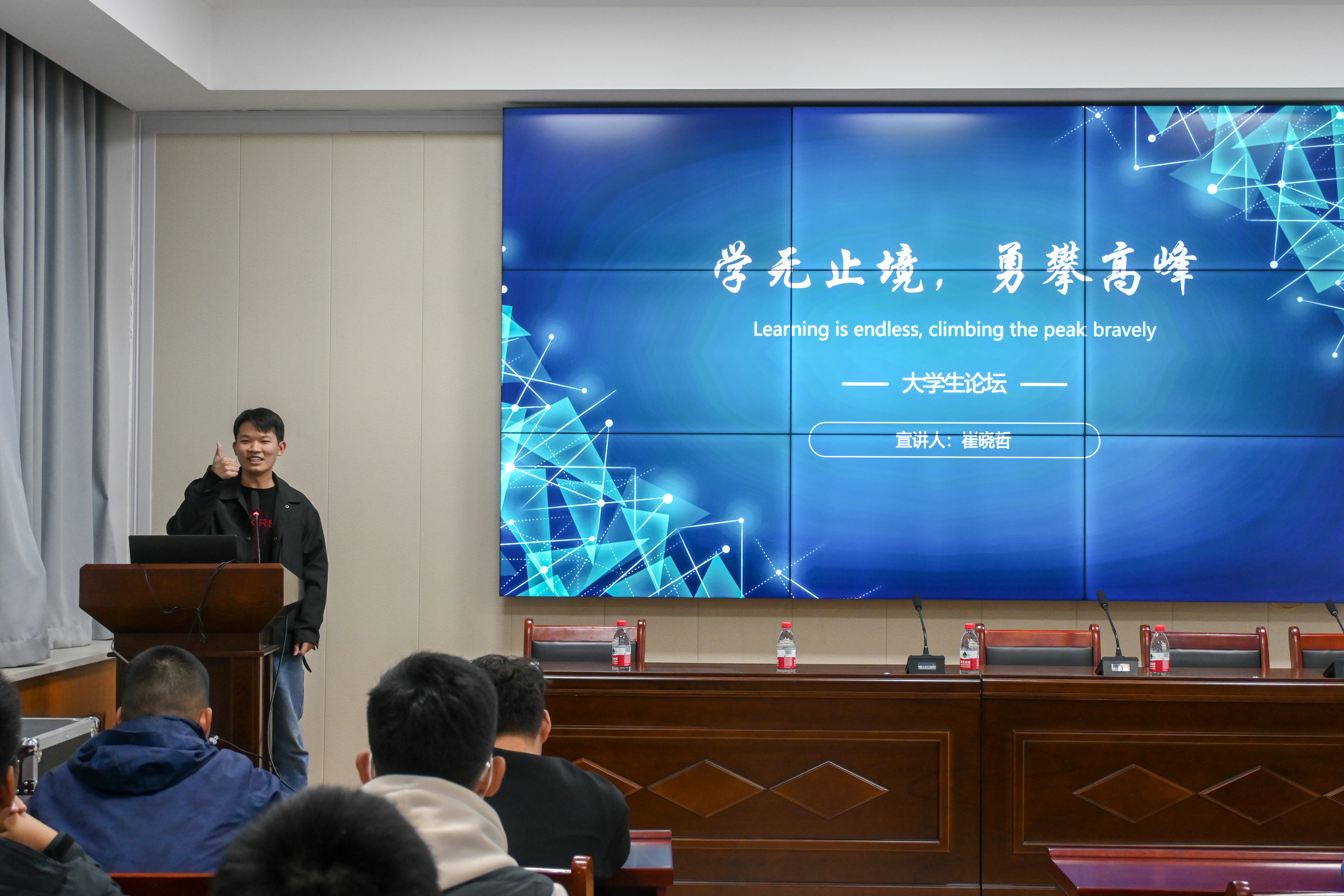 优秀学生代表原茂森、崔晓哲、袁梦玲、吕锋进行宣讲。100余名师生参加了本次论坛。论坛由学院团委副书记丁晶晶主持。