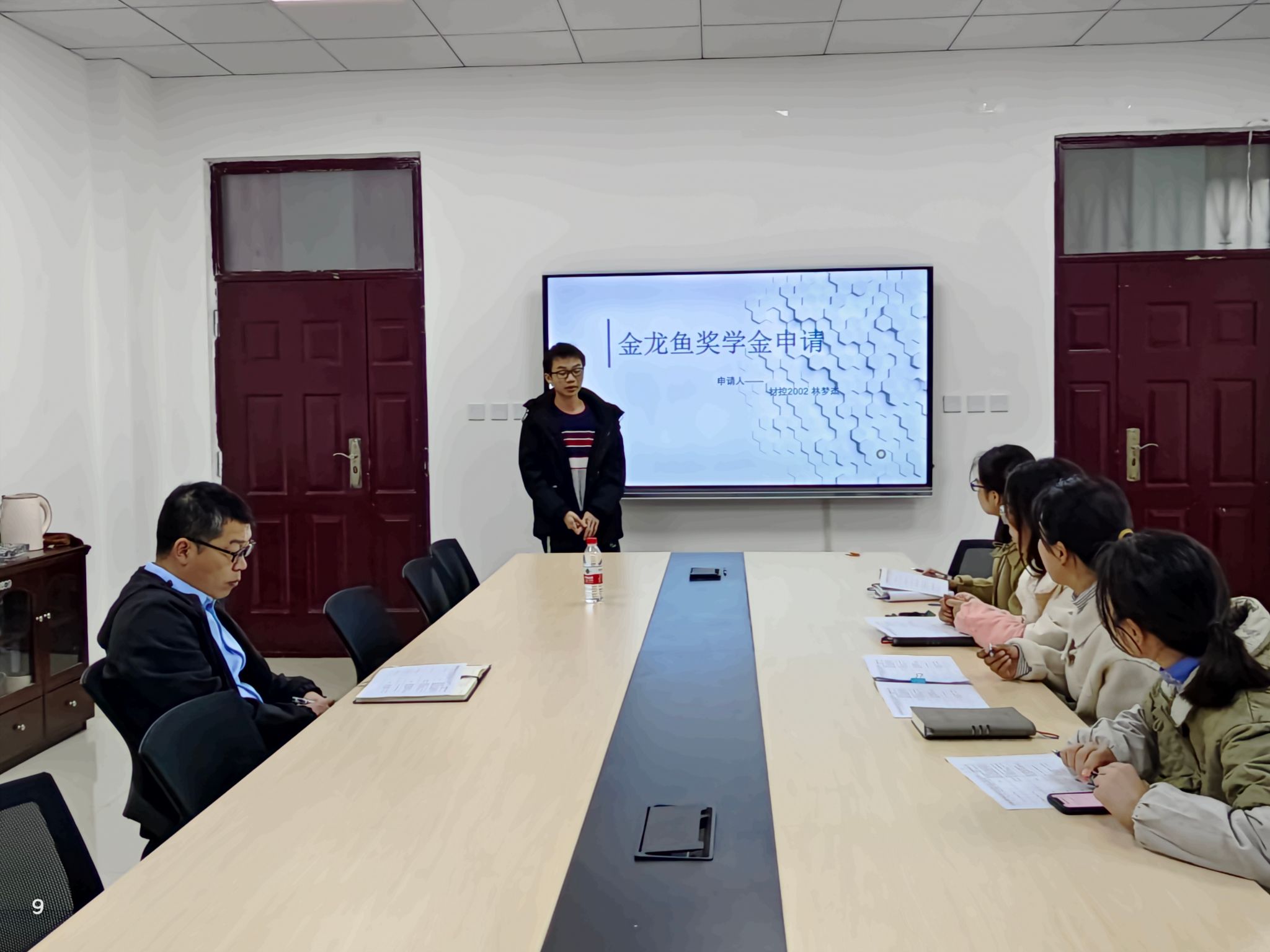 于7123举行2022-2023学年金龙鱼奖学金答辩会,院党委副书记张小彩、全体辅导员、院学生资助评审小组成员和学生代表参加评议。学工办主任刘伟杰主持答辩。