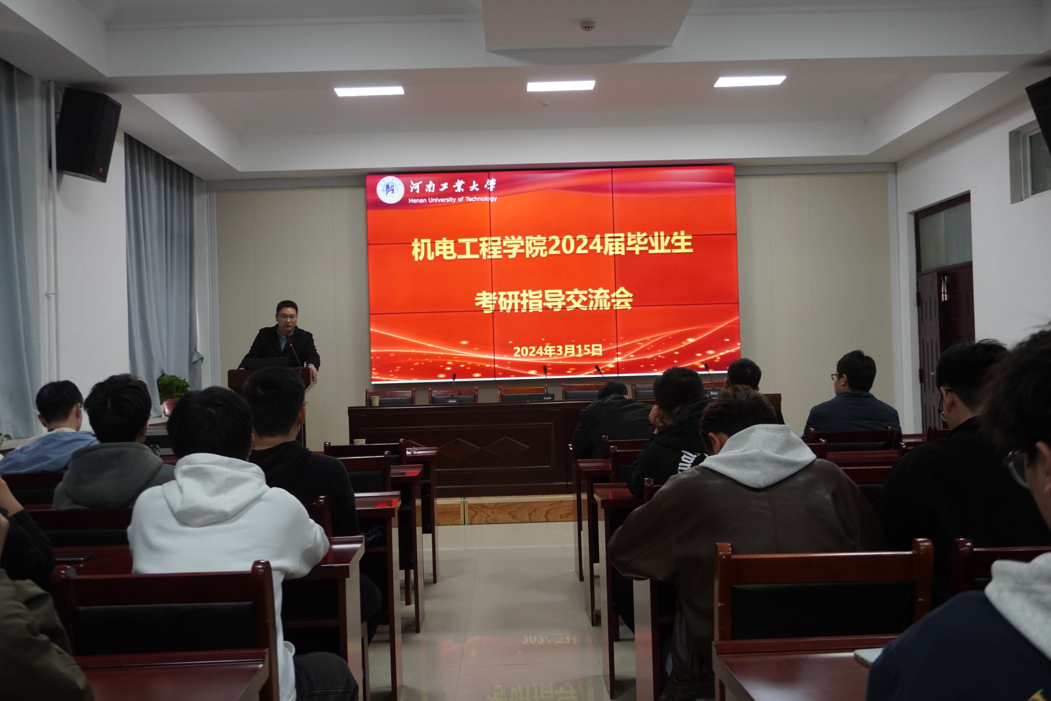 在7224分专业召开2024届毕业生考研指导交流会。学院党委副书记张小彩、研究生办和学工办老师、部分系主任、教师代表及全体考研过线学生参加会议。会议由毕业班辅导员周阳阳主持。
