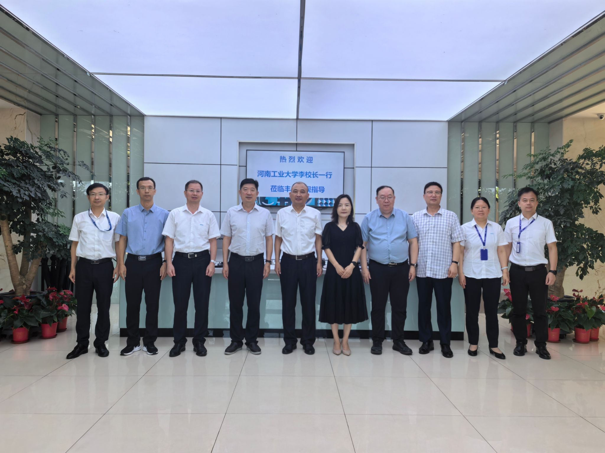 在丰尚农牧装备有限公司,李焕锋一行参观了丰尚科技展厅、智能生产车间、党建馆和全球作战指挥中心,详细了解了公司发展历程、业务范围、研发实力以及全球化数字化发展战略等内容。在座谈环节,李焕锋详细介绍了学校整体情况,对公司关心支持学校学院发展表示感谢。吴兰介绍了学院的专业设置、办学特色、人才培养、科研团队等相关情况。学院90级校友、公司副总裁高瑞斌对于学校一行的到来表示热烈欢迎,对学校积极搭建校企合作和人才就业对接平台表示感谢。人力资源部总经理李菁介绍了我校200余名毕业生在公司工作的情况以及未来人才需求。双方就产教融合、协同育人、联合研发等方面进行了细致的交流,明确了相关具体项目和落地计划。丰尚中央研究院副院长范文海、人力资源部副总经理陈加民等校友参与接待。