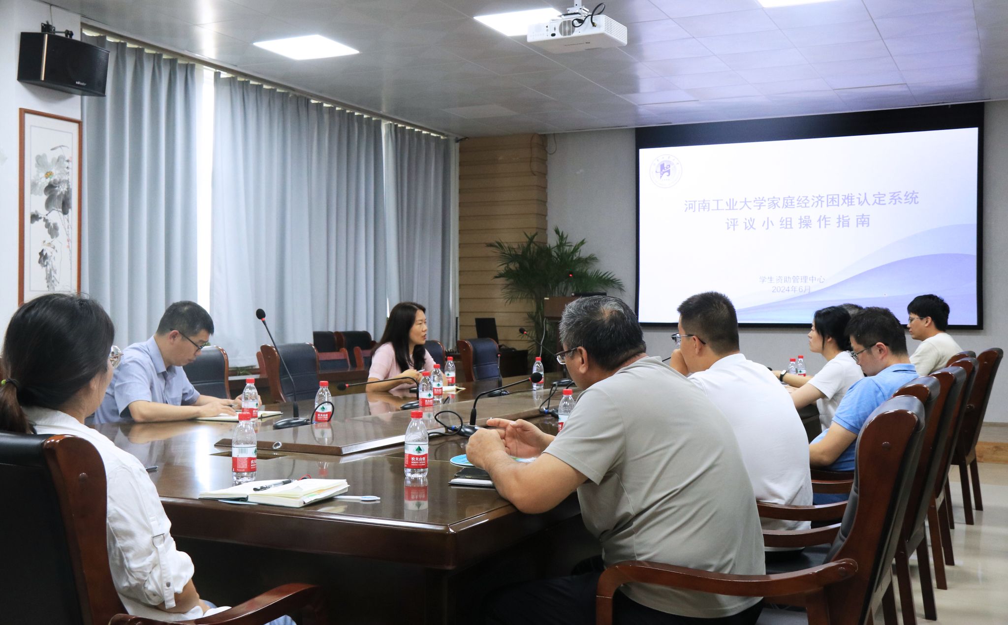 在7244会议室召开2024年家庭经济困难认定工作培训会。学院党委副书记张东霞、学工办主任刘伟杰、全体辅导员和新生班主任参加会议。