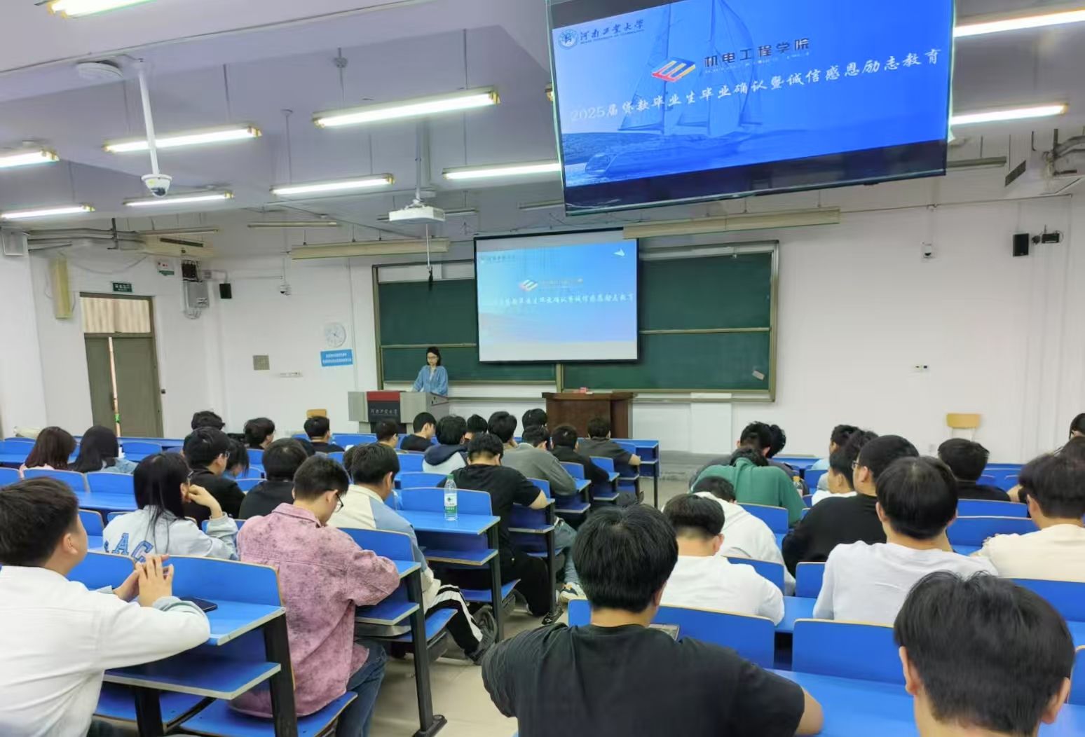 于4月15日在博学楼4121教室组织召开了贷款毕业生毕业确认暨诚信感恩励志教育专题宣讲会。学院资助工作负责人冯晨晨老师及2025届全体贷款毕业生共同参加了此次会议。