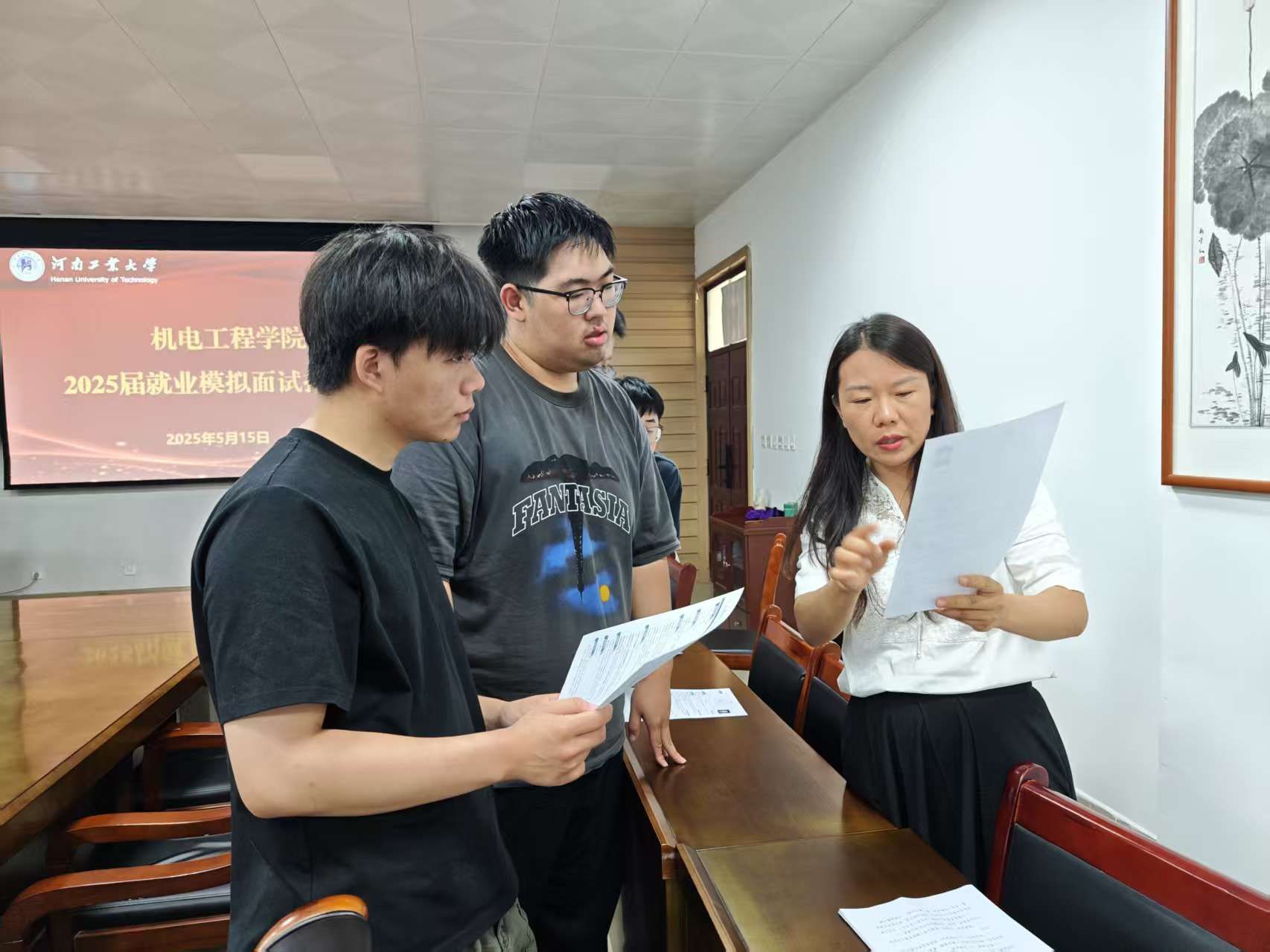 为进一步做好毕业生就业指导工作,提升学生求职面试能力,5月15日下午,机电工程学院在惟明楼7244召开2025届毕业生就业模拟面试指导会。学院党党委副书记张东霞、辅导员杨贞贞和未落实就业去向的毕业生参加活动。