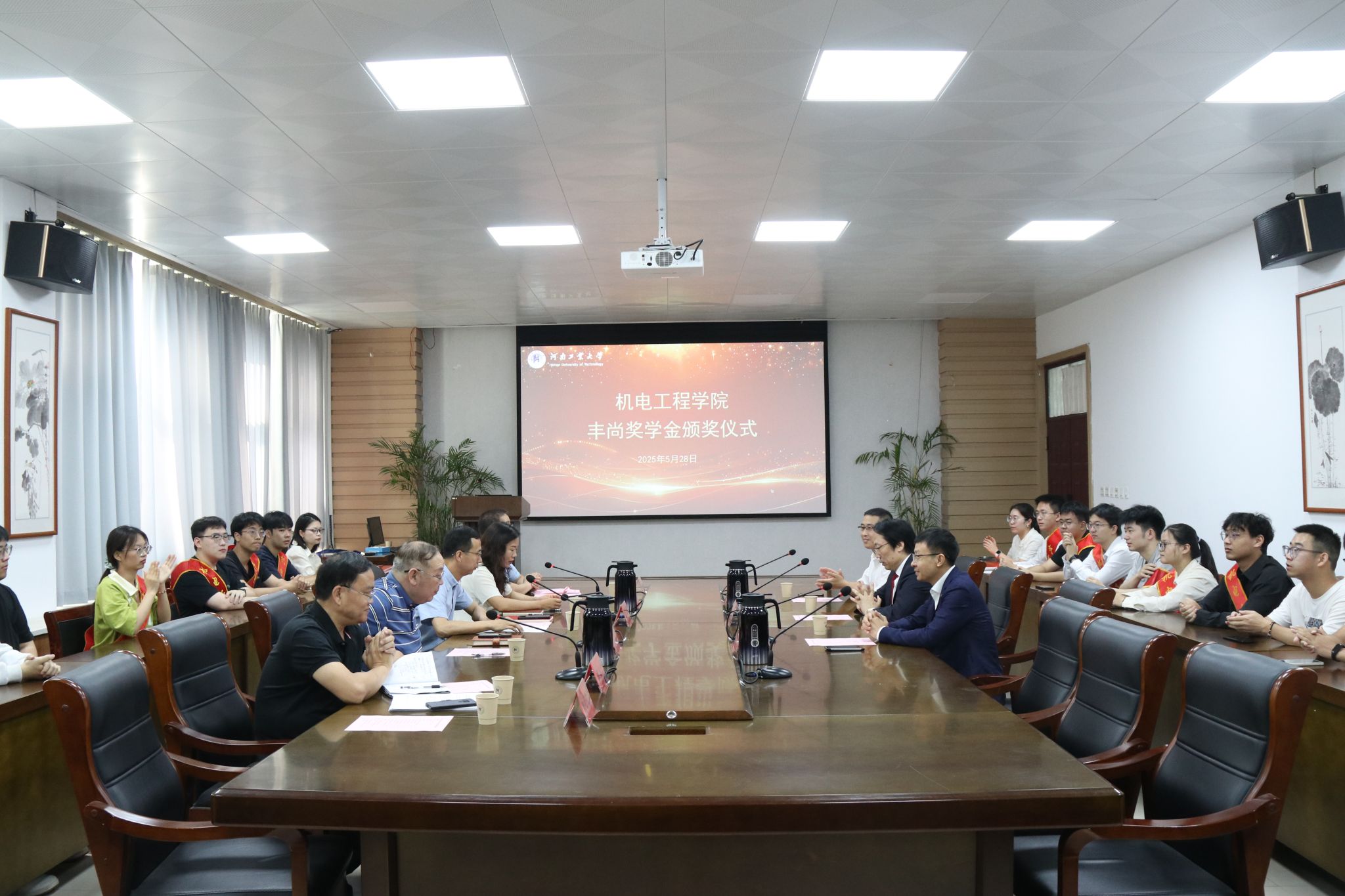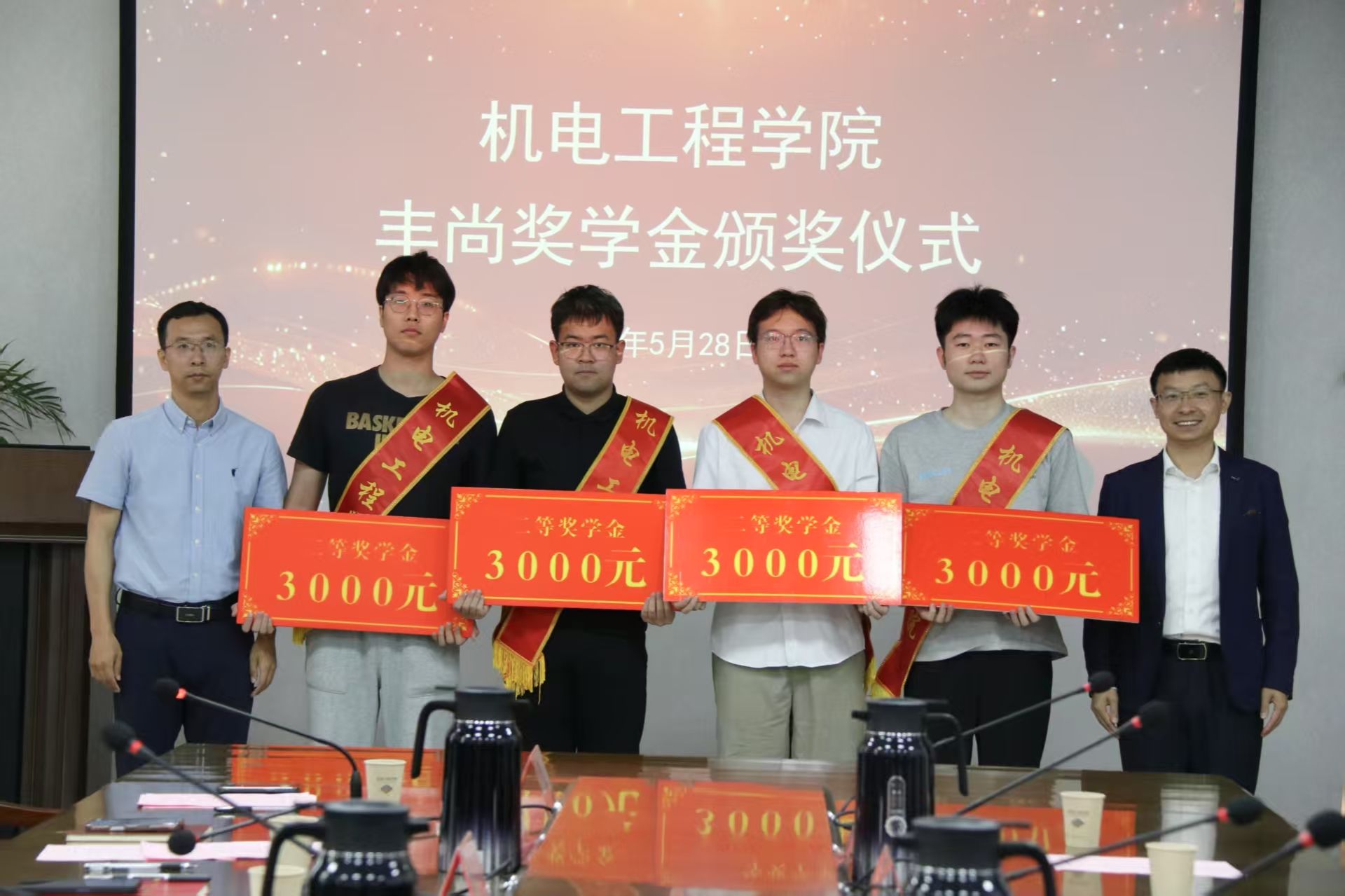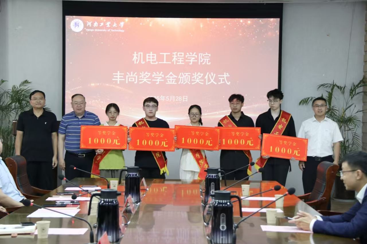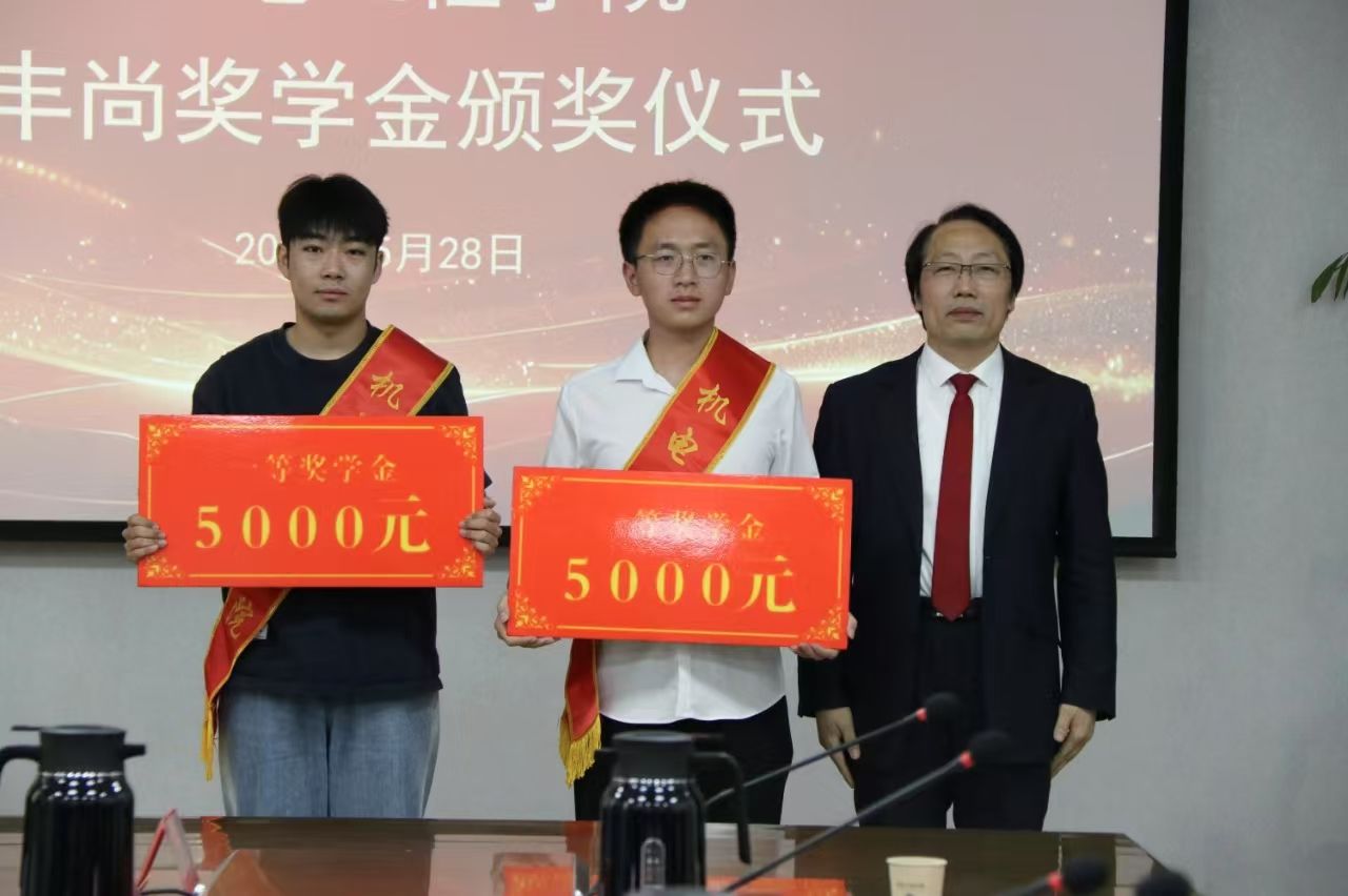 关于表彰2024年度“丰尚奖学金”的决定》,与会嘉宾为获奖学生颁发奖项。机制2105班袁秀凯同学作为获奖代表发言,他表示这份奖学金不仅是荣誉更是责任,未来将以创新精神投身专业实践,以责任意识回馈社会关怀,持续传递公益火种。