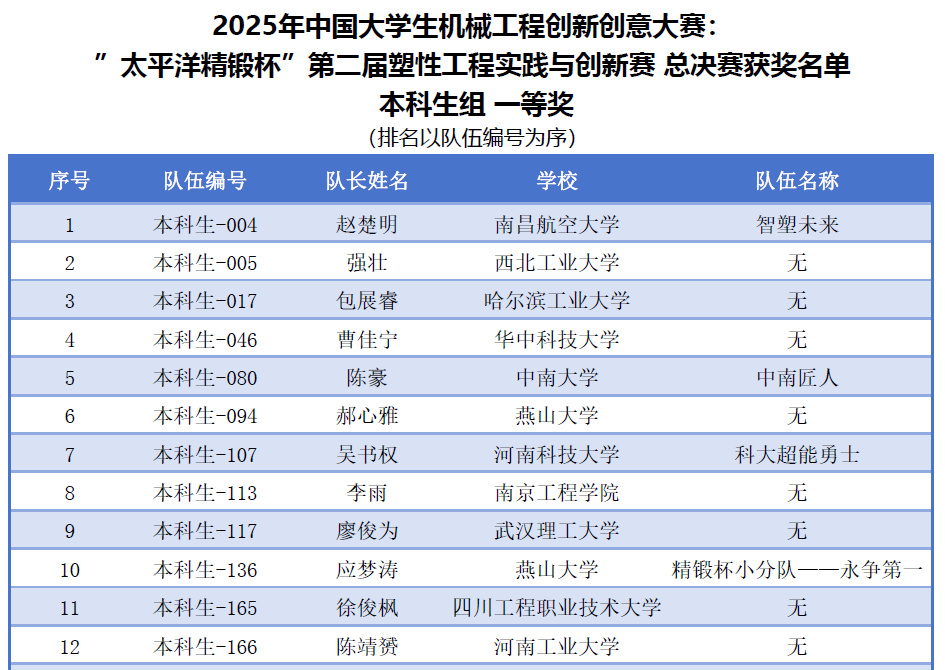 近日,2025年中国大学生机械工程创新创意大赛“太平洋精锻杯”第二届塑性工程实践与创新赛总决赛在太原科技大学落下帷幕。经过激烈角逐,P站