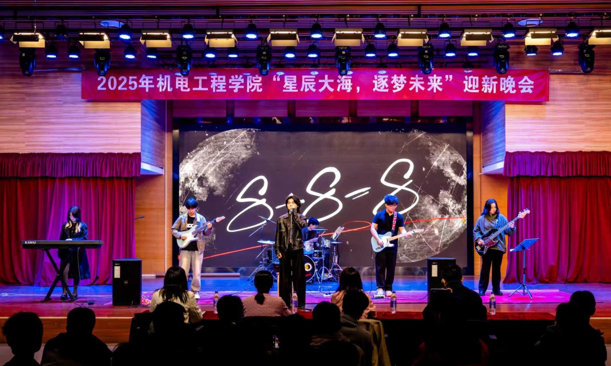 整场晚会节奏紧凑、精彩纷呈,既有青春活力的张扬,也有温情浪漫的表达,更有传统文化的传承,全方位展现了机电学子的多元风采。演出落幕时,学院领导老师与全体演职人员一同上台合影留念,定格下这一温馨难忘的时刻。(文/丁晶晶 摄影/赵轩基 审校/张东霞 审核/魏涛)