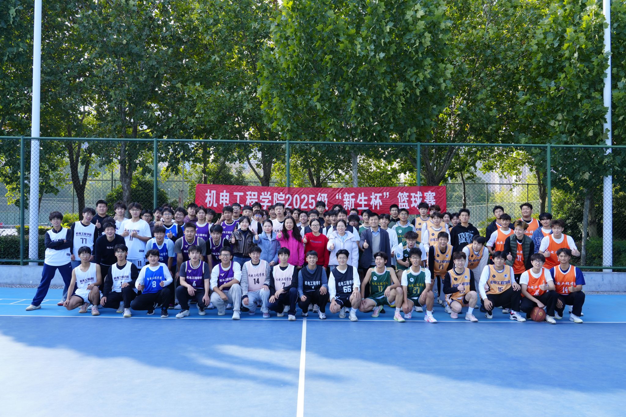 2025级“新生杯”篮球赛在莲花街校区西篮球场拉开帷幕。院党委副书记张东霞、团委书记丁晶晶、全体辅导员、裁判员、运动员和工作人员参加了开幕式。