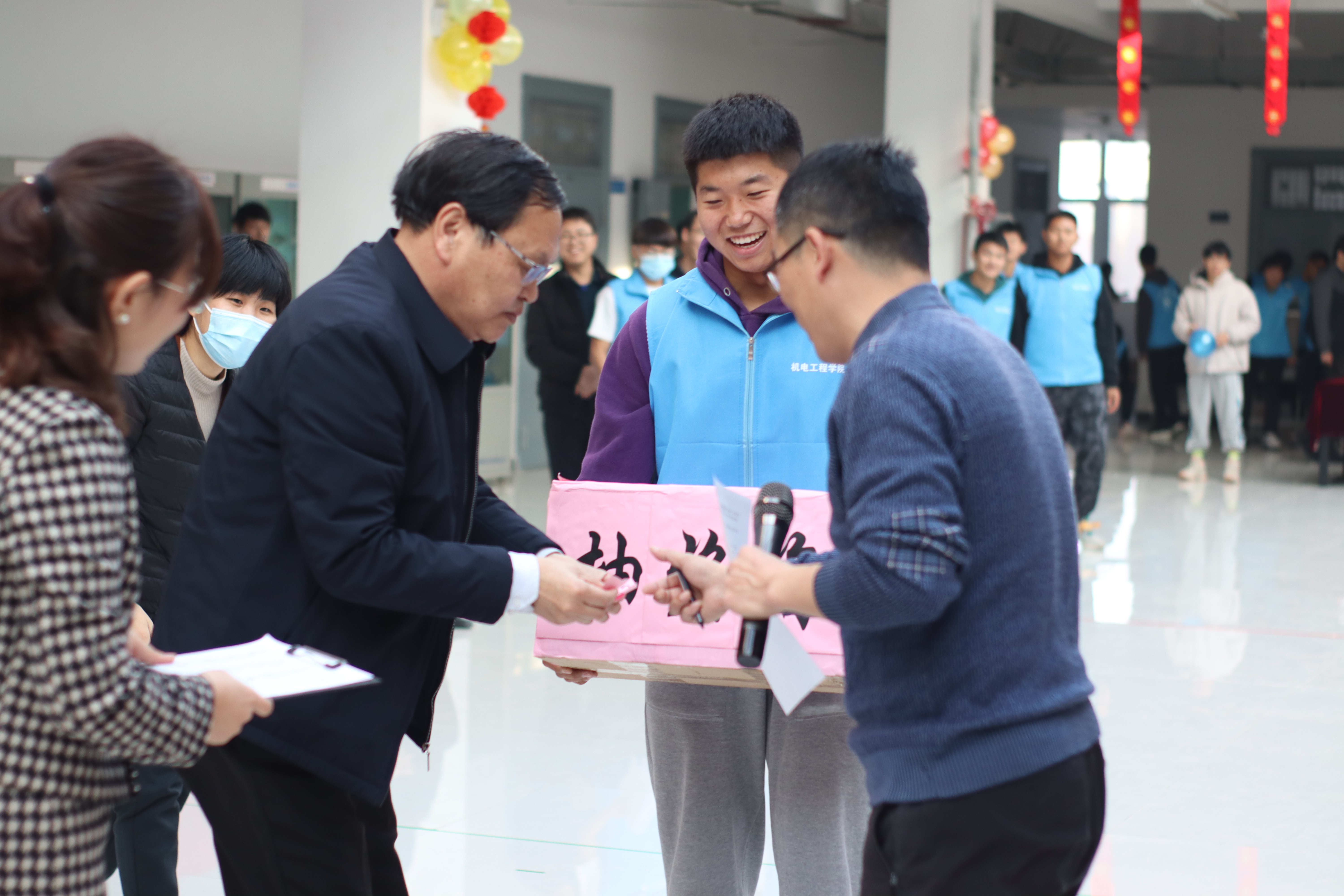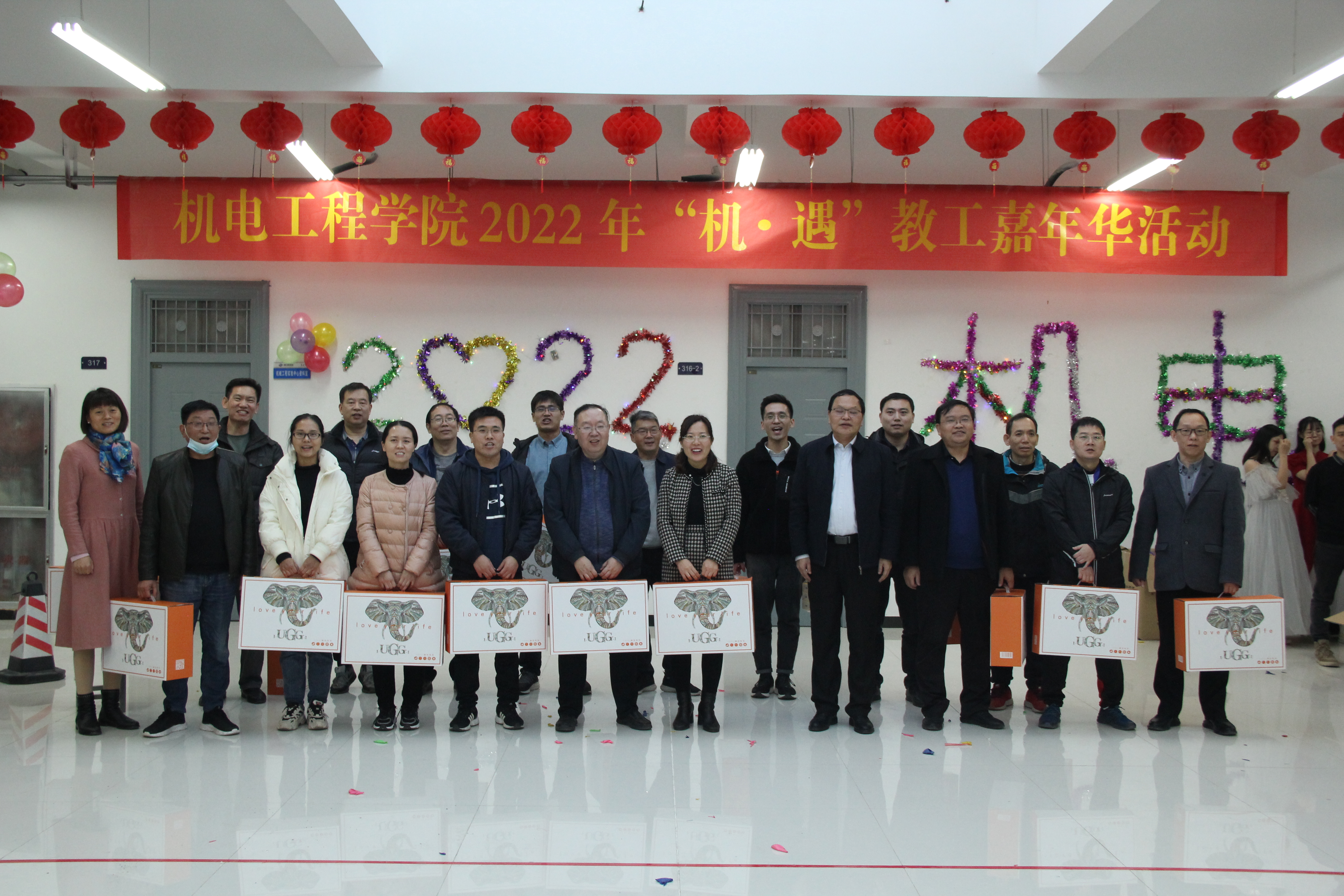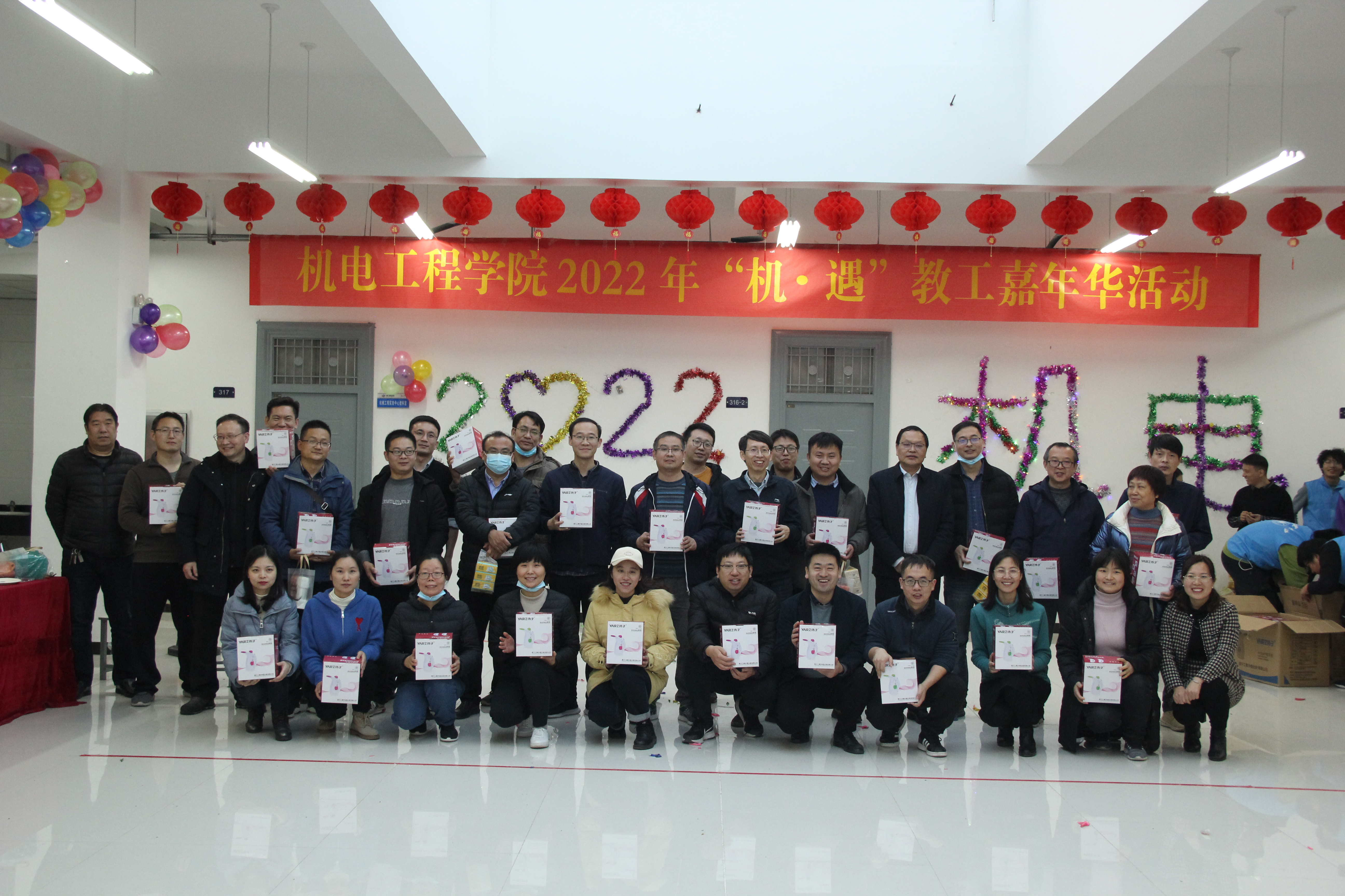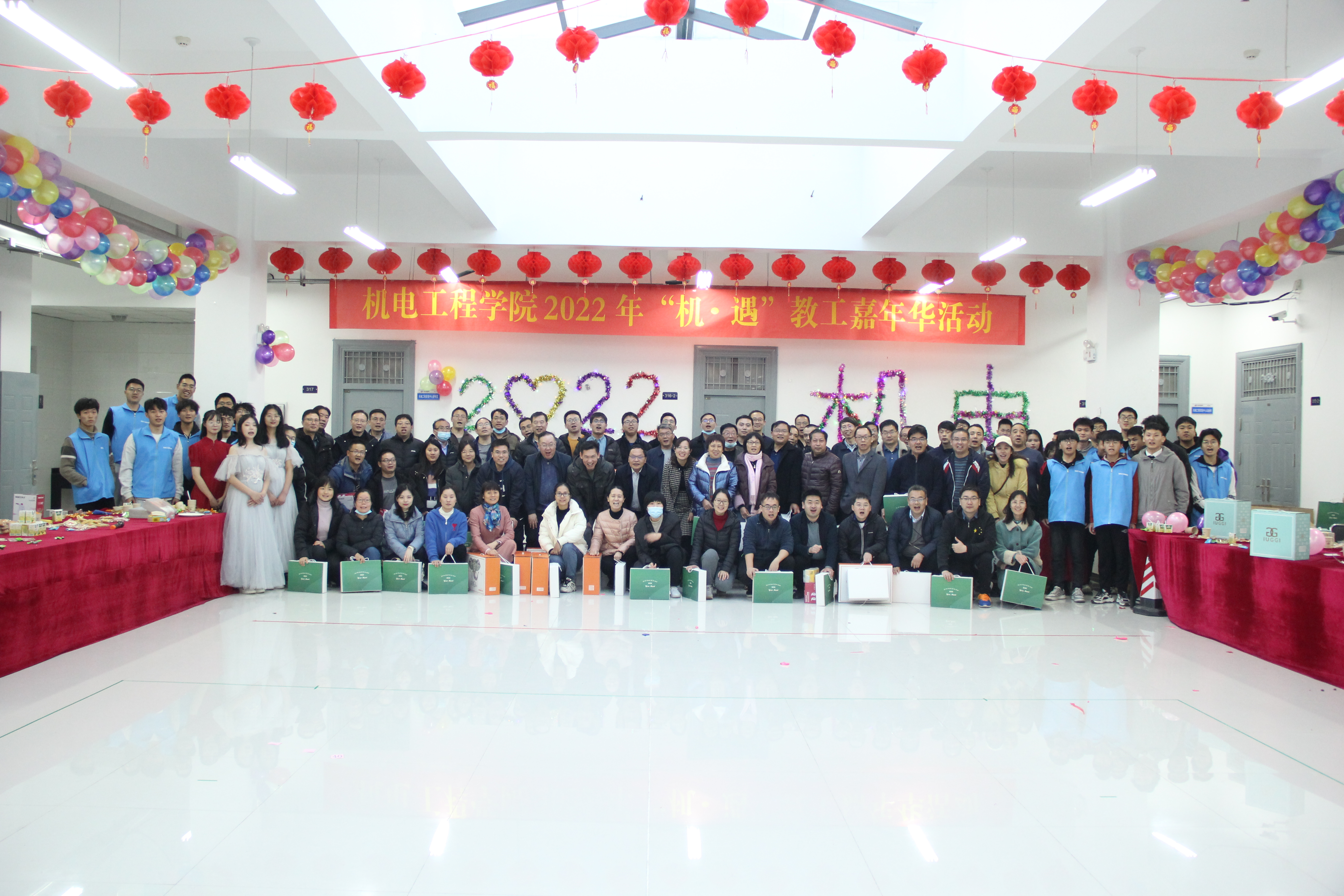 在基础实验实训中心机电实验三楼大厅,举办了第二届2022“机·遇”教工嘉年华活动。学院领导班子成员和全体教工成员参加。活动由学院工会文体委员刘伟杰老师主持。