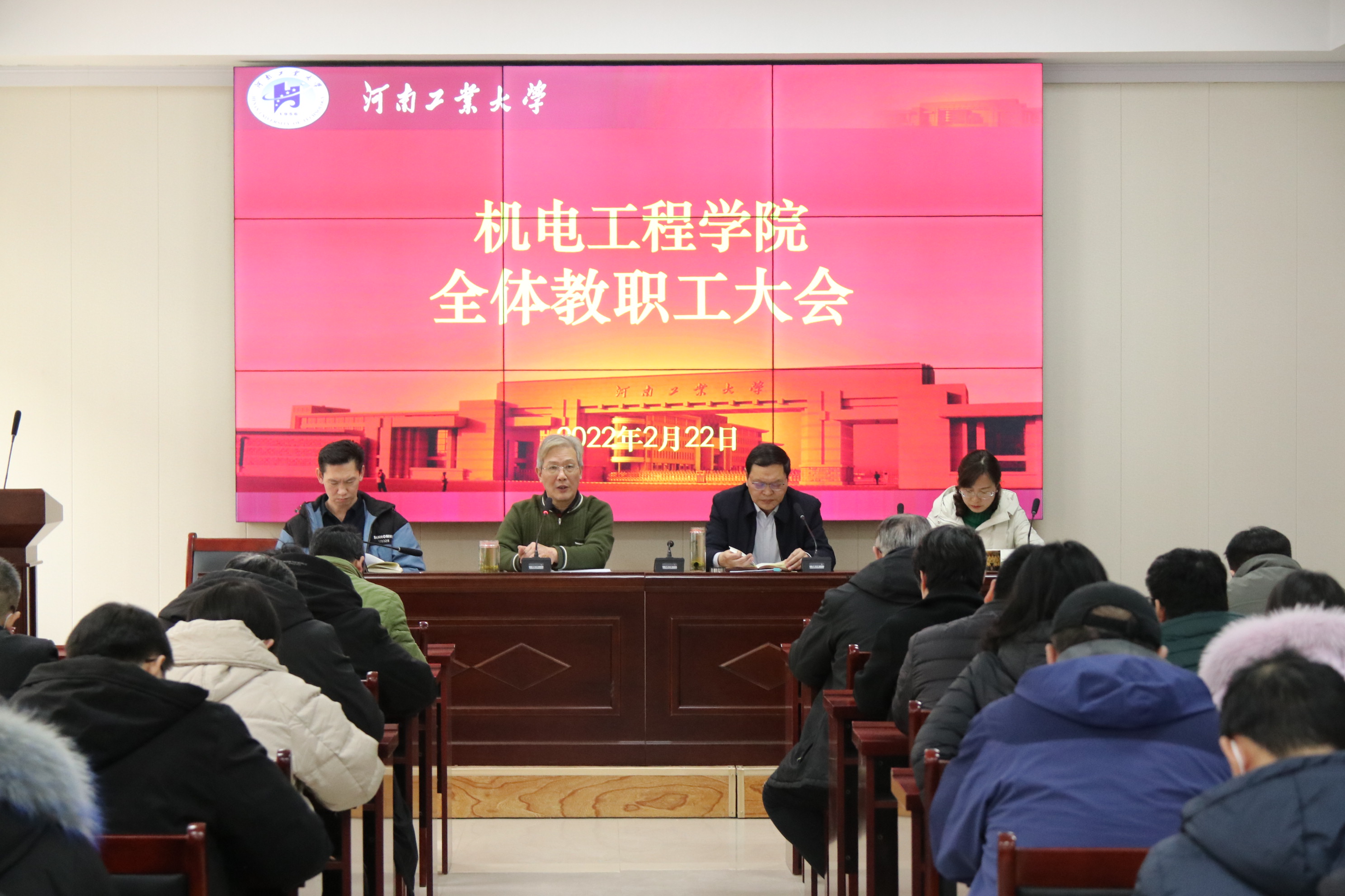 会上,院长惠延波首先对2021年度工作进行了回顾和总结,他对去年的成绩表示肯定,对大家的努力奉献表示感谢,也对存在不足进行了分析,对全体老师提出了新要求。他强调,新学期要加大对科技创新、专业认证、基金项目等重点工作的建设和支持,全体教职工要继续在各方面争先创优,发挥精诚团结、扎实工作的优良传统,新学期,新干劲,新目标,希望全院上下共同努力,为开创学院工作新局面做出应有的贡献。