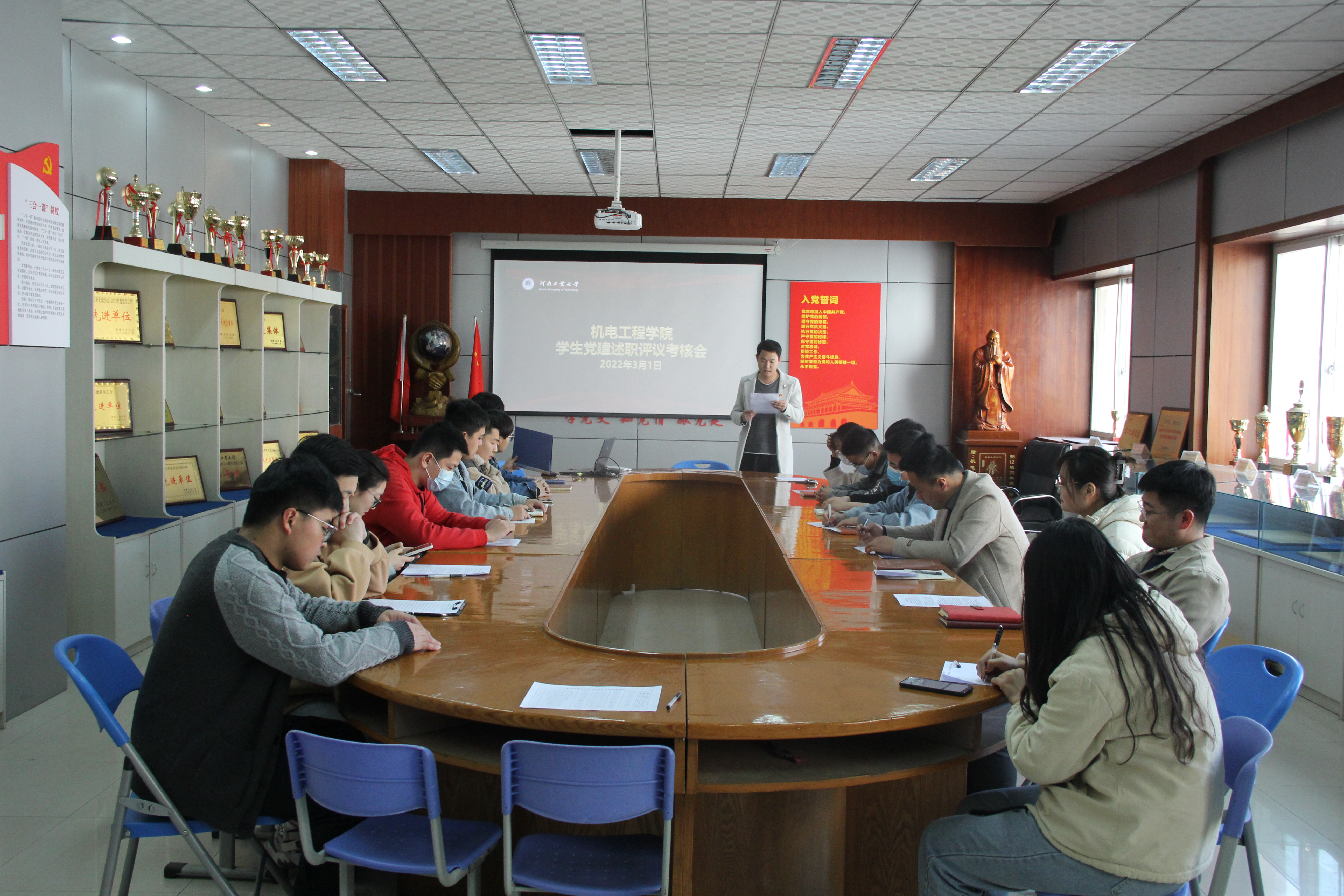 学生党支部在7415会议室召开了2021年度学生党建述职评议考核会。学院各学生党支部委员参加了本次会议。会议由车辆专业学生党支部组织委员李建辉主持。