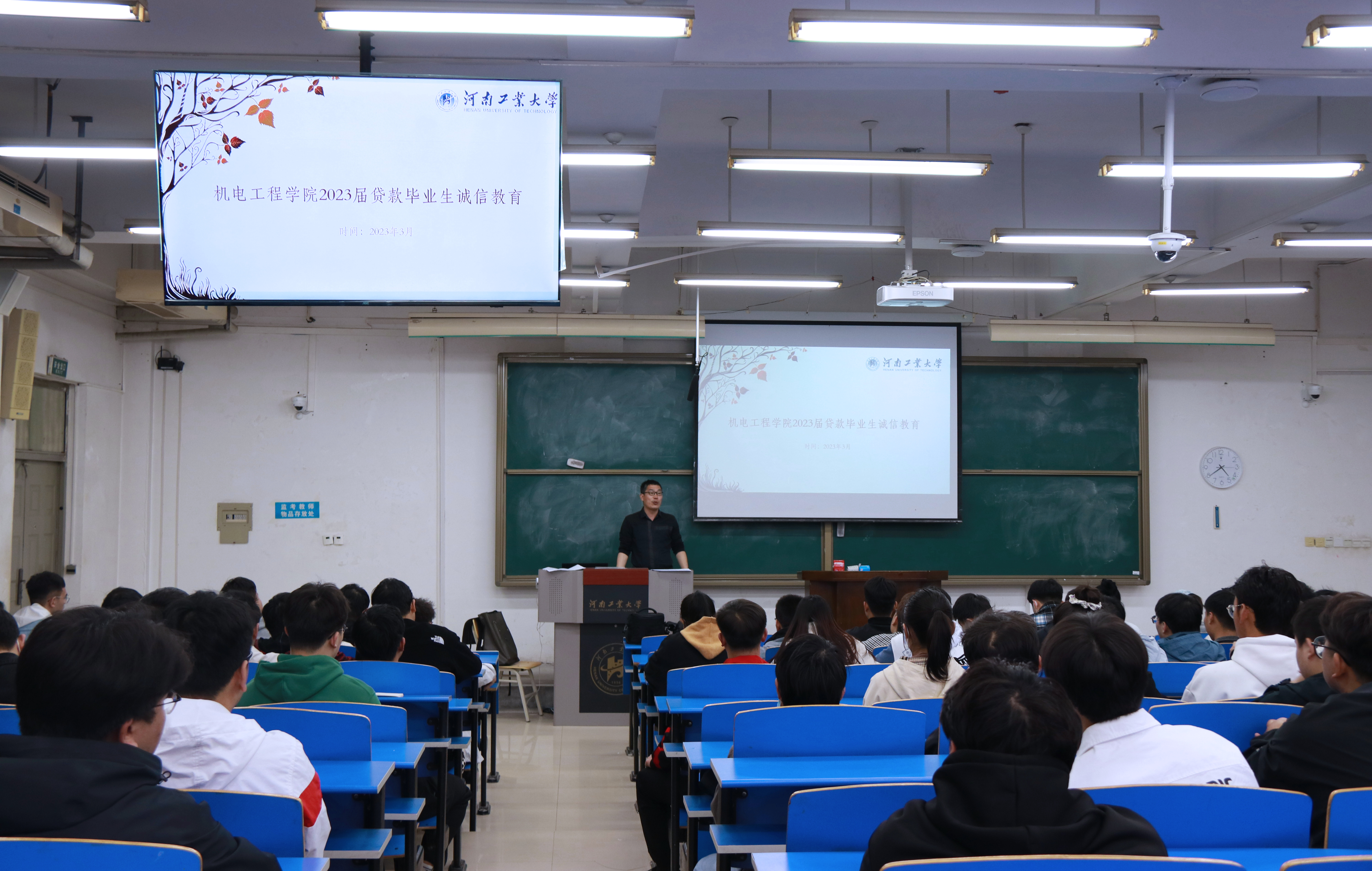 会议开始,刘伟杰从贷款毕业生基本情况、毕业确认的重要性和诚信还款的重要性展开讲解,并结合违约案例和诚信案例告诫学生要培养诚信和感恩意识,鼓励学生努力克服困难,励志成才,勇往直前。