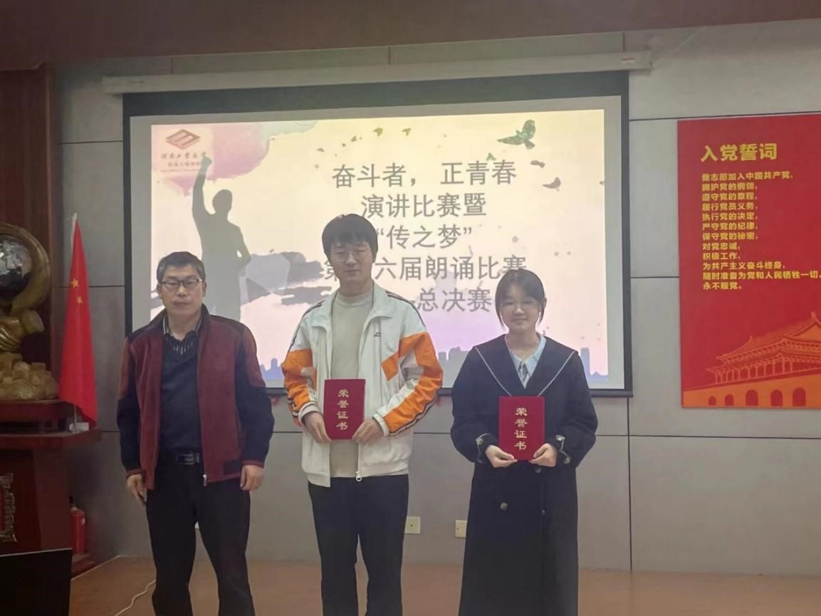 比赛中,选手们围绕主题,有的激情昂扬,表达了永跟党走的坚定信念;有的娓娓道来,重温了党的百年光辉历程;有的真挚感人,深情讲述了自己或身边人的正能量故事;有的温馨和煦,展现了个人成长历程及时代变迁……同经过激烈角逐,2021级周泽阳和2022级张昀姝同学以声情并茂、富有感染力的精彩表现摘得桂冠,代表学院进入学校复赛。