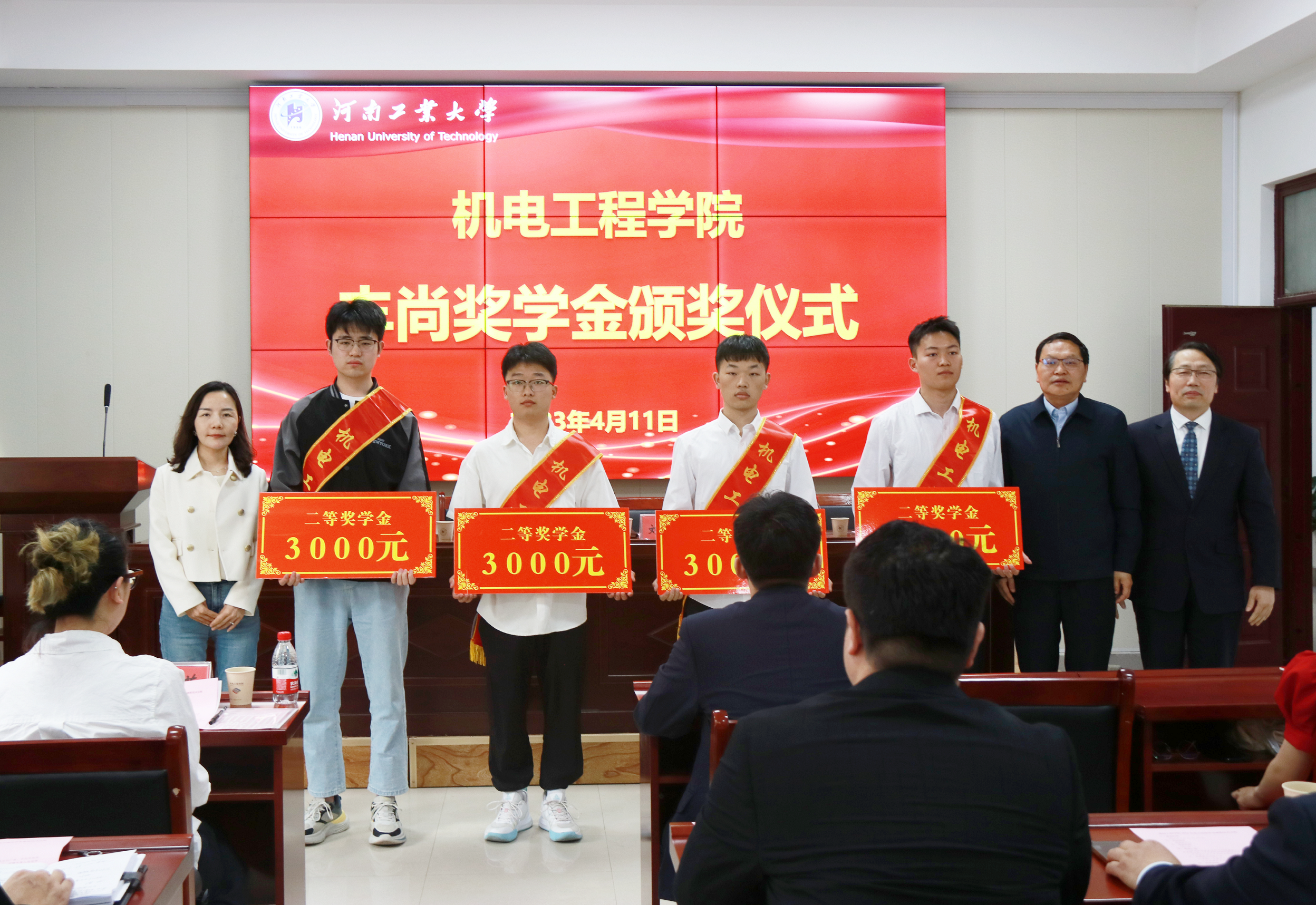 关于表彰2022年度“丰尚”奖学金获奖学生的决定》,与会嘉宾为获奖学生代表颁发了奖项。机制1903班刘鹏飞同学代表获奖学生对丰尚农牧装备有限公司致以诚挚谢意,表达了自己对社会爱心企业的感激之情,承诺一定肩负起青年学子的责任和使命,付出更大的努力,取得更大的进步,回报学校和社会。