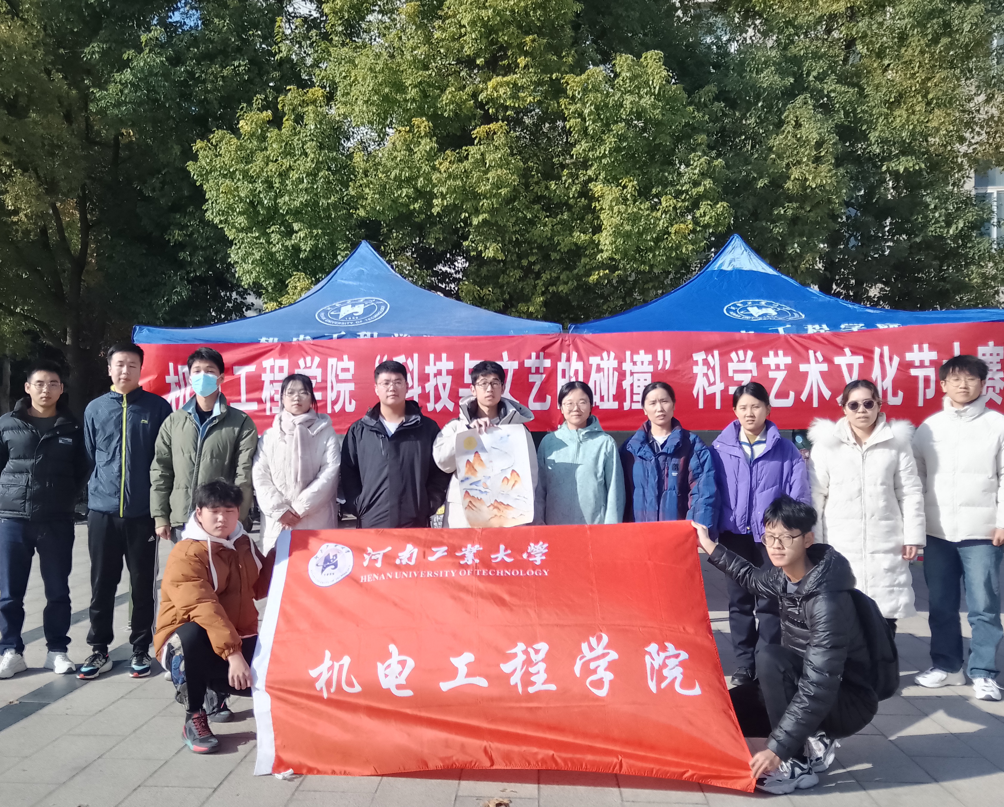 承办的“科技与文艺的碰撞”作品设计大赛在校钟楼广场进行了作品展示。全体辅导员老师,参赛师生参与了本次活动。
