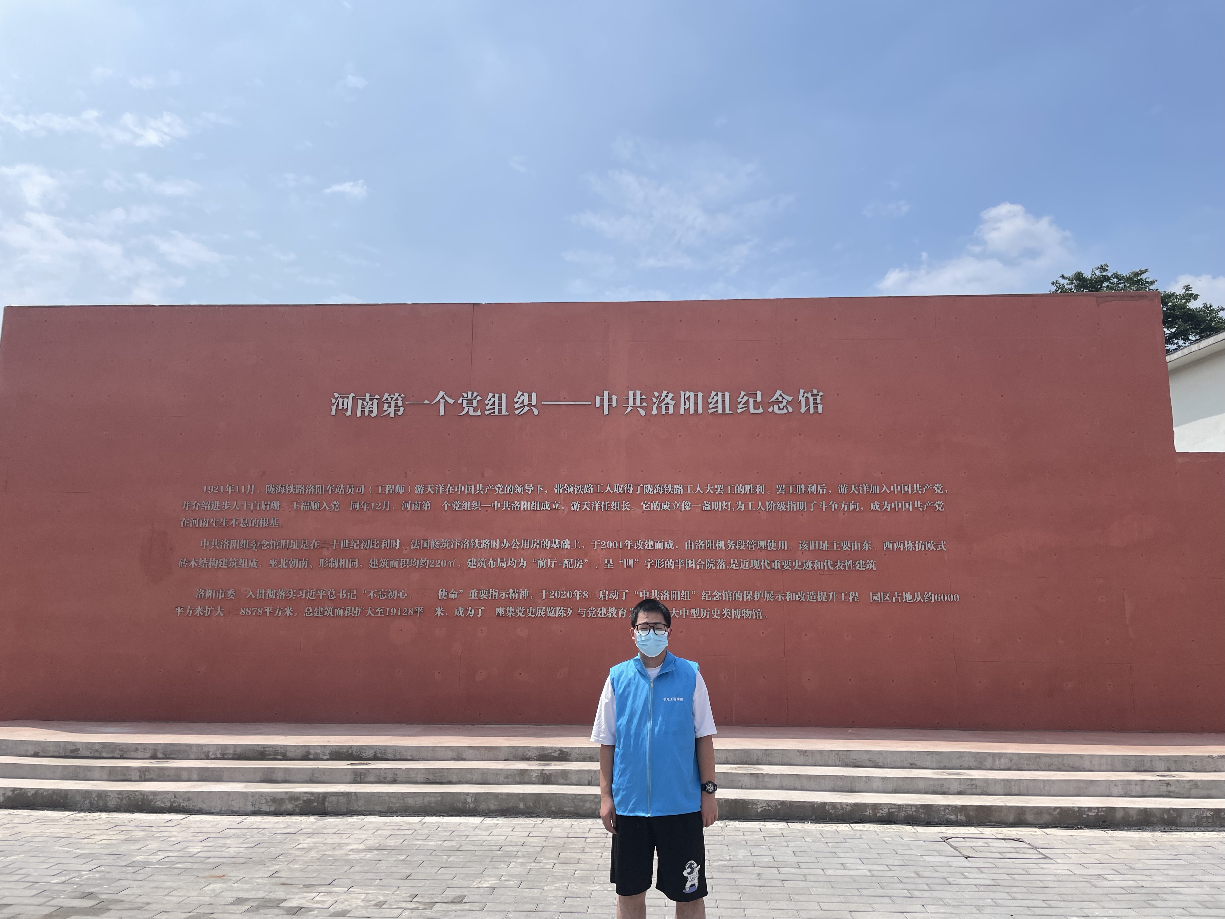 7月8号,小组成员来到“洛阳中共纪念馆”。1921年11月,陇海铁路洛阳车站员司(工程师)游天洋在中国共产党的领导下,带领铁路工人取得了陇海铁路大罢工的胜利,罢工胜利后,游天洋加入中国共产党,介绍进步人士白眉珊、王富顺入党,同年12月,河南第一个党组织中共洛阳组成立,游天洋任组长。它的成立像一盏明灯,为工人阶级指明了斗争方向,成为中国共产党在河南生生不息的根基。