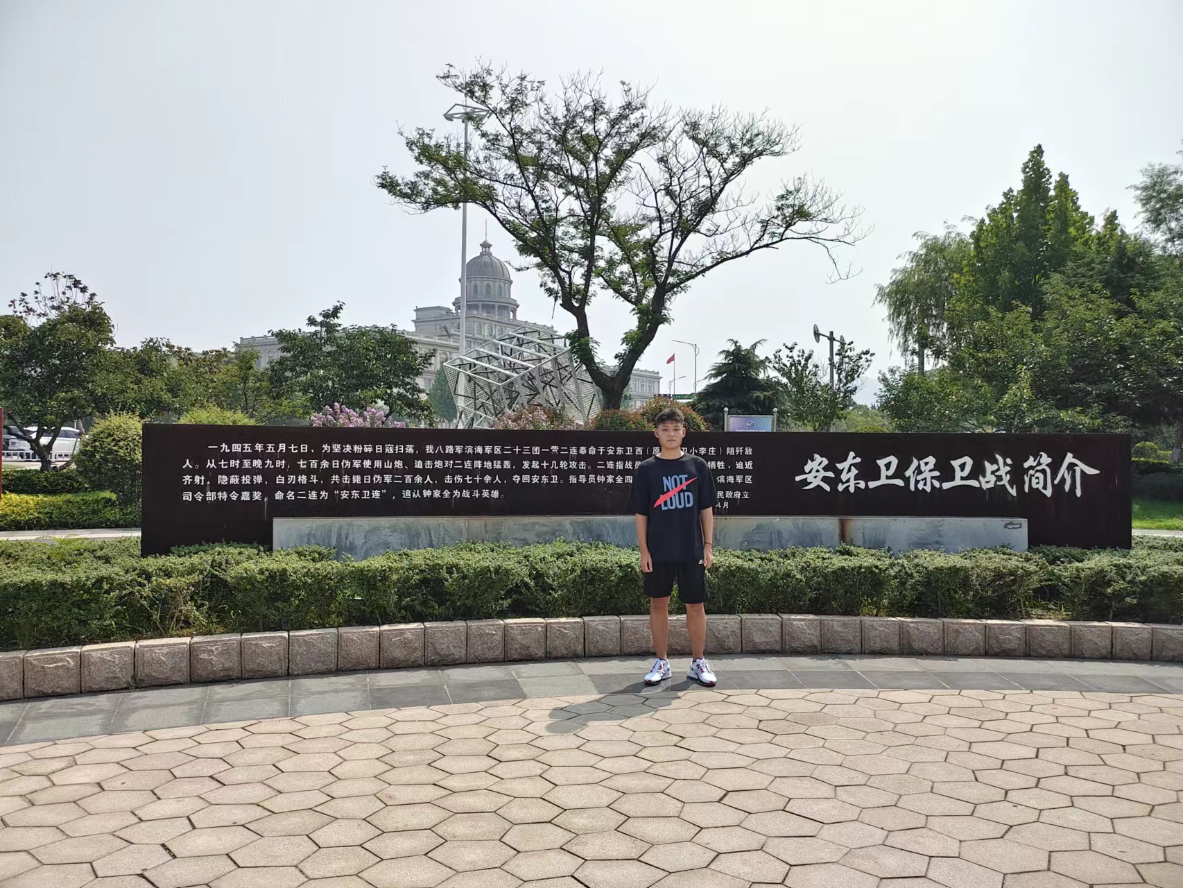 2022年7月9日红七队的左钰队员参观了家乡岚山的安东卫保卫战的遗址,在车流密集的道路旁,最醒目的便是安东卫连战士的雕塑,仿佛当年迎战侵略者的伟大身姿重现。看着石碑上对安东卫保卫战的简介,感觉历史仿佛就在眼前重现了一遍,我怀着对先辈们的崇高敬意读完对这场战役的战果和伤亡情况,先辈们用鲜血和生命与敌人展开殊死搏斗,在付出巨大的代价后,成功歼灭敌人,夺回了安东卫,捍卫了国家的领土。每一个字都令我备受震撼,让我更加深刻的理解了党的信仰,那就是不论付出多大的代价,也要誓死捍卫国家和人民的利益,看到遗址,就能感受到党的战士那英勇无畏,奋勇杀敌的决心和力量。
