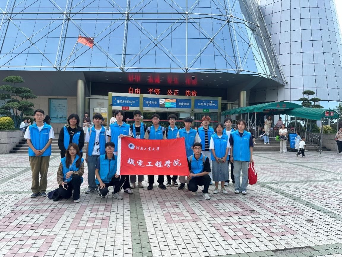 活动当天7:00在学校西门集合,清点人数后,一同乘坐地铁前往郑州科技馆,在馆内由工作人员进行了简单的志愿者培训,强调工作内容。随后将志愿者分散不同楼层,各楼层再次分组,轮流进行志愿服务,为游客提供帮助,解答馆内良好参观秩序。中午采取分组吃饭,保证馆内时刻有志愿者服务游客。当日下午17:00科技馆闭关帮助疏散游客,将科技馆内物品清点归位,归还科技馆志愿服。活动结束后,我校志愿者在科技馆门口合照留念,随后再次清点人数,乘坐地铁返回学校。
